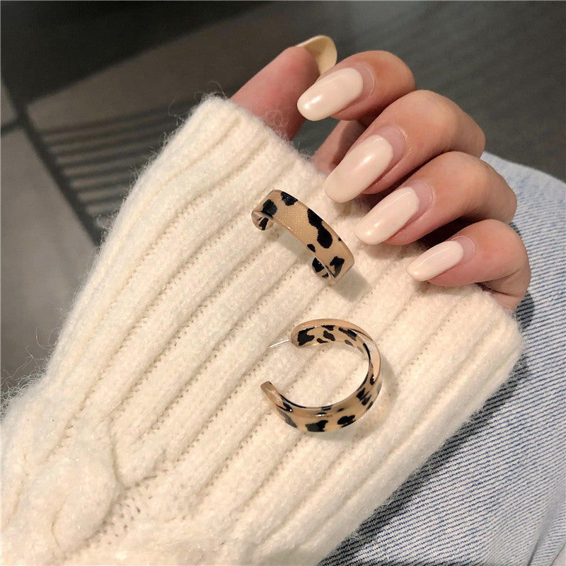 S925 Silver Needle Leopard Print Circle Earrings
