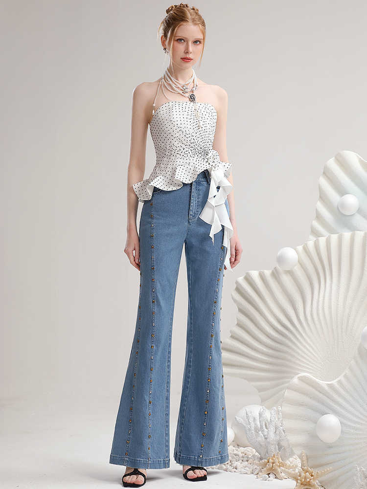 Summer Contrast Color Polka Dot Irregular Spaghetti-strap Top